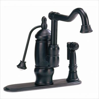 BFGKF02FWS Finish: Stainless Steel This faucet will instantly add a countryside feel to any kitchen. Its single handle pump gives off a soft yet elegant aura. Available in four finishes, this faucet is sure to garner praise from all who see it. The handle goes perfectly with Belle Foret's pump style faucets and comes in four finishes. Features: -Faucet available in the following finishes: chrome, oil rubbed bronze, polished brass, and stainless steel -3-hole faucet installation -0.5'' IPS faucet inlets -10.25'' faucet spout height -7.75'' faucet aerator clearance -9'' faucet spout reach -Ceramic faucet disc cartridge -Matching side spray -Overall faucet dimensions: 10'' H x 2.5'' W x 9'' D -Handle available in the following finishes: chrome, oil rubbed bronze, polished brass, and stainless steel -Pump handle with porcelain index button For additional information please see the assembly information and specifications listed below. Faucet Specification and Parts Breakdown Handle Specification and Parts Breakdown