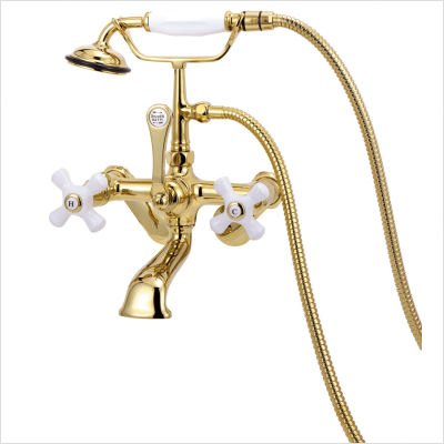 TW35 Finish: Polished Brass Resurrect the golden age of faucet design with Elizabethan Classics' Adjustable Tub Faucet with Handshower. This vintage designed tub faucet includes a matching, fully functional handshower, adjustable swivel arm connectors, and stylish porcelain cross handles. The faucet can be mounted on to your wall or on to freestanding supplies and is adjustable up to 12-1/2 inches. Indulge yourself in the best of both worlds; the luxury of yesteryear with the convenience of modern day innovation, thanks to Elizabethan Classics. Features: -Adjustable Tub Faucet with Hand Shower and Porcelain Cross Handles -Available in chrome, oil rubbed bronze, polished brass, satin nickel -Tub-Wall Mount or Mount on ECFSS Freestanding Supplies -3-3/8'' to 12-1/2'' Adjustable Centers -Includes Adjustable Swivel Arm Connectors - Ceramic Disc Cartridges -Requires Freestanding, Single or Double Supplies (ECFSS01-05, ECSOSL, ECDOSL) For additional information please see the assembly information and specifications listed below. Technical Data